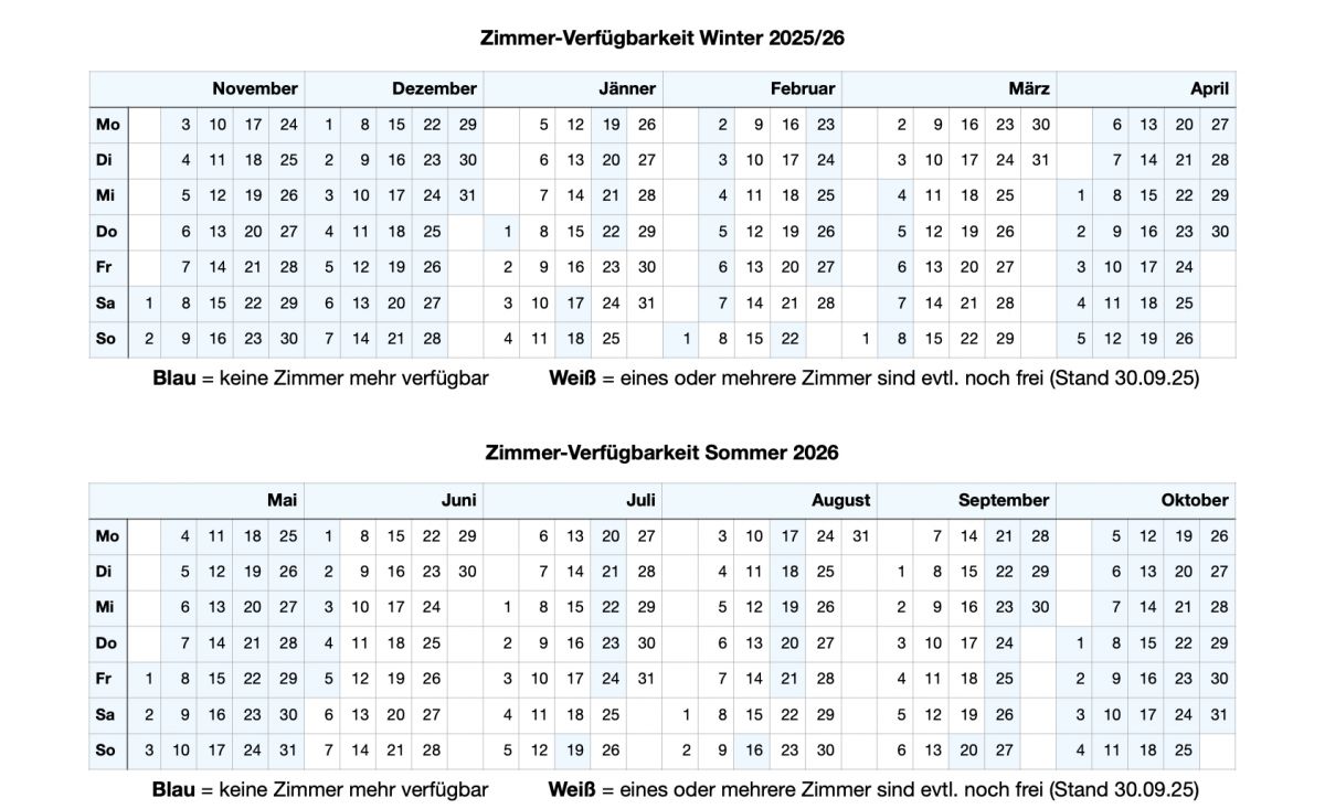 In der Zwischensaison, vor dem 06.06. und nach dem 19.09., haben wir leider geschlossen.